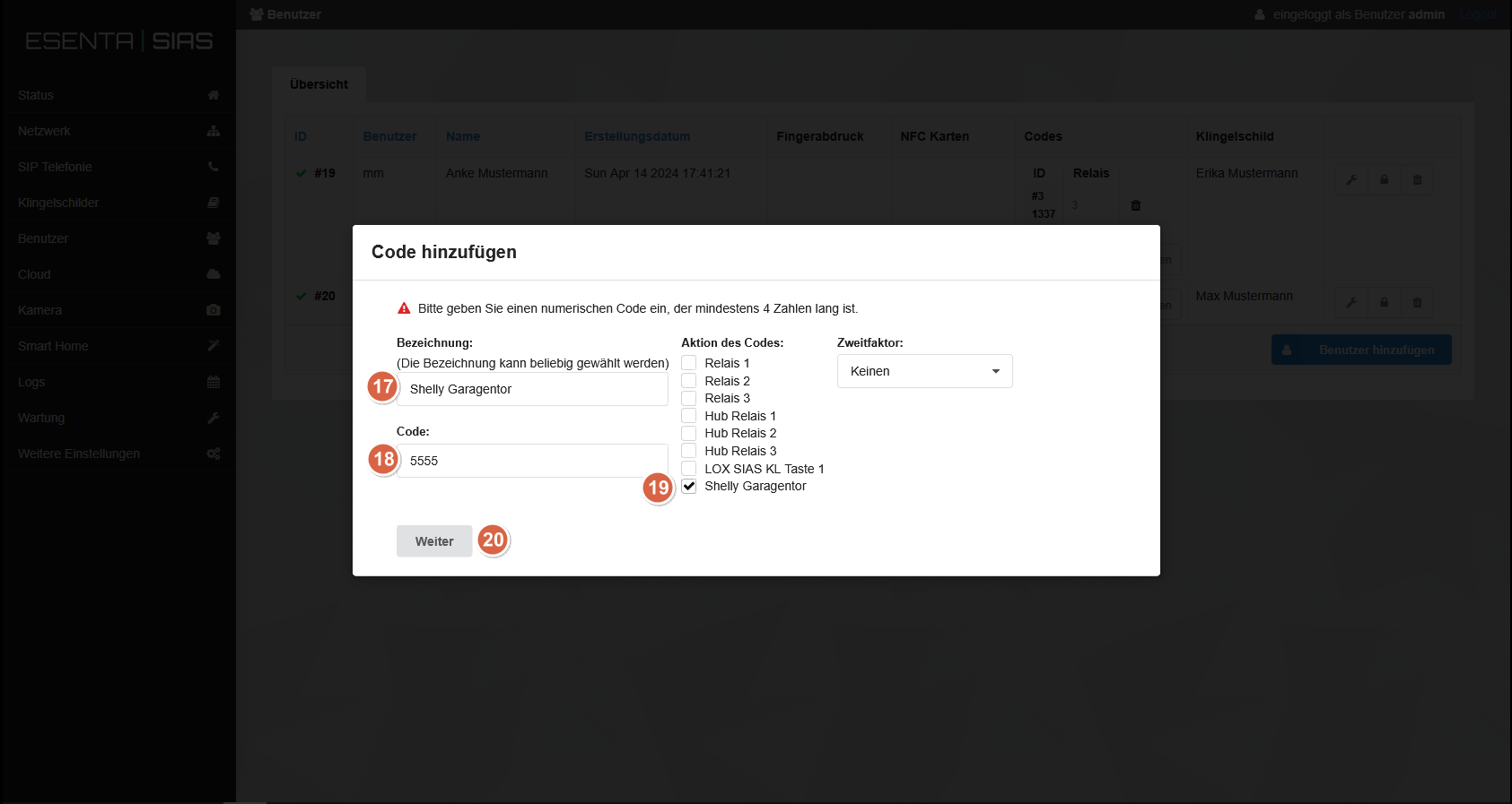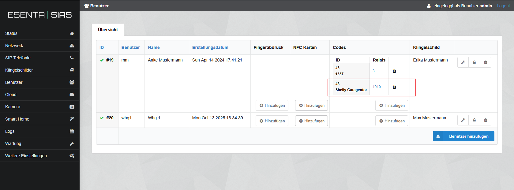 Fingerabdruck / NFC Karte oder Code das Shelly zuordnen #